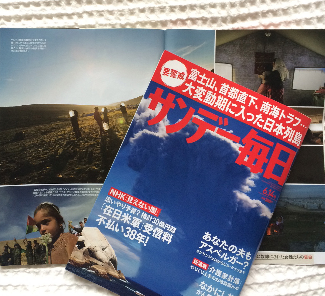 イラクのクルド自治区で取材をした、少数民族ヤズディ教徒の女性たちのストーリーを6月2日発売のサンデー毎日で紹介しています。