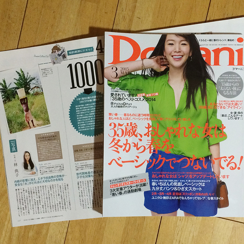 2月発売の女性ファッション誌「Domani」3月号ではリベリアの写真と記事を掲載していただいています。最近は落ちついて来たと言われるエボラ出血熱ですが、2014年6月からこれまでに3200人以上がリベリアで亡くなっていると言われています。この国では1989年から2003年まで断続的に続いた内戦で20万人以上の死者と100万人以上の難民を生みました。