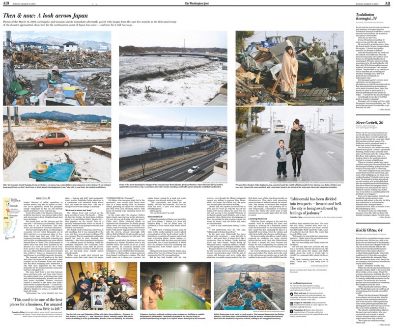 アメリカの新聞社『ワシントンポスト』紙のアサイメントで撮影した、石巻の写真が掲載されました (上左と下の写真3枚です)